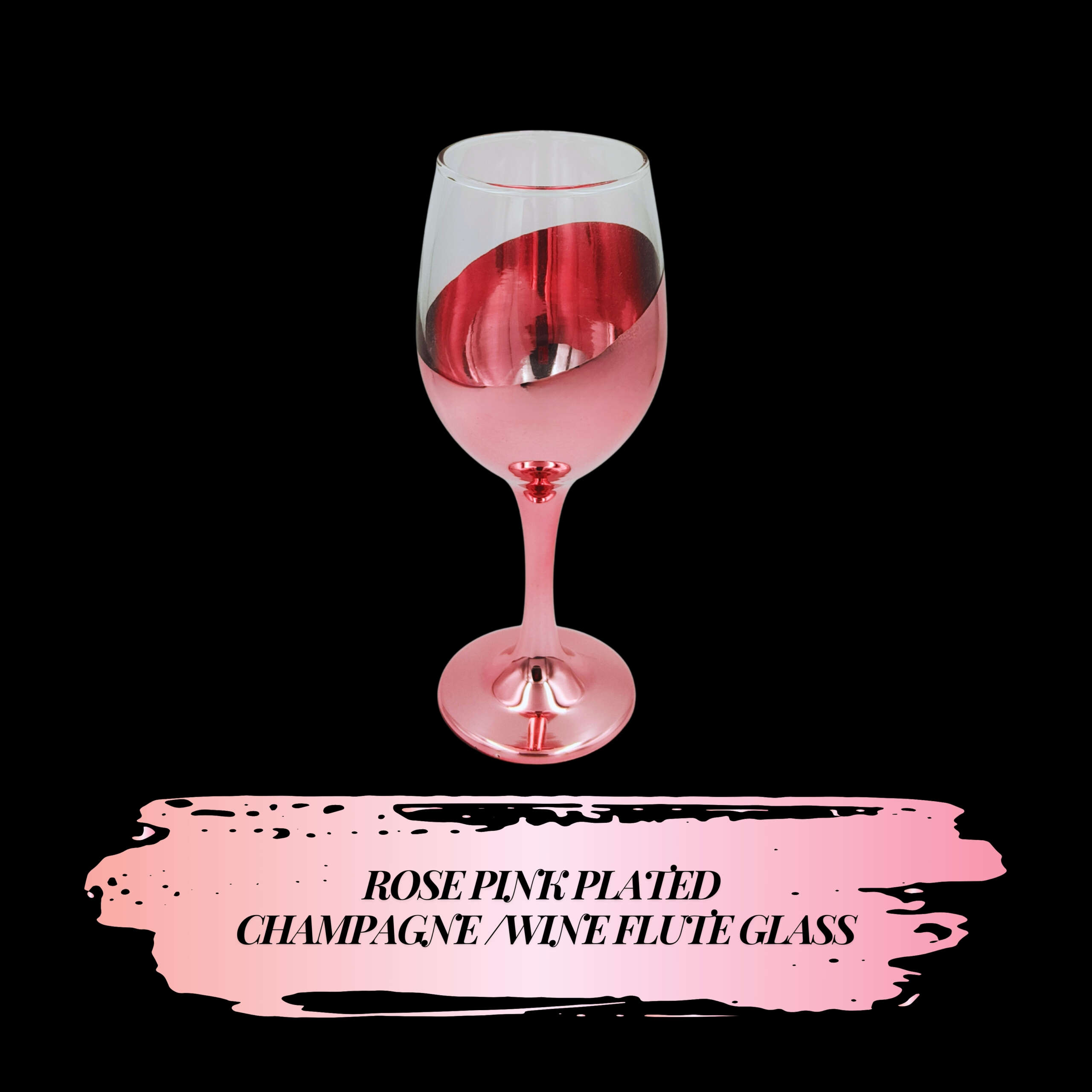 Rose Gold Color Plated Long stemmed Sparkling Champagne / Wine Glasses for White or Red wine- Set Of 2. For a party, gifting or even display at your bar at home 330 ML